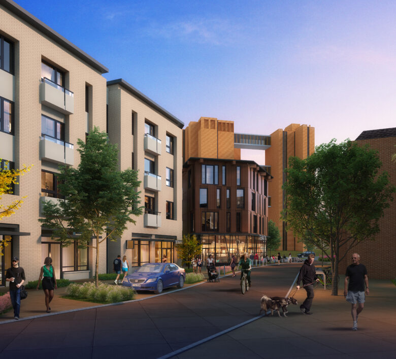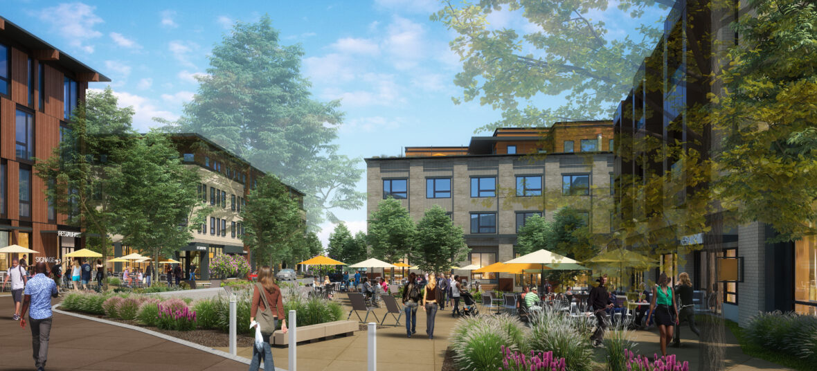 At the heart of the project lies a flexible central plaza that serves as a new neighborhood center for Central Boulder, shaded by an inviting tree canopy and framed by active building edges. Small outdoor “rooms” blend with larger gathering areas to accommodate everything from daily meetups to markets and game-day celebrations.