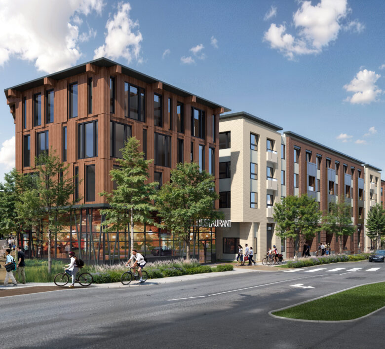 With its two acres of contiguous public open space and a thoughtfully integrated pedestrian and bike-first circulation network, Williams Village II transforms a former strip retail center and parking lot into a vibrant, people-centred place. The design not only supports multi-modal transit and active lifestyles, but also embeds environmentally sensitive design principles, native ecosystem-based planting and storm-water stewardship into everyday experience.