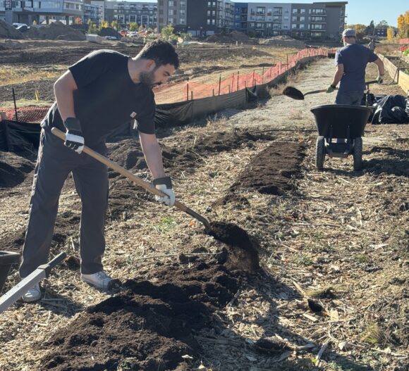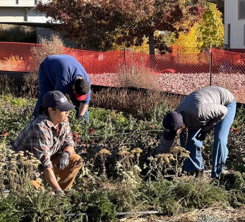 At the end of Village Farms’ 2025 growing season, Civitas and the Colorado-Wyoming chapter of the American Society of Landscape Architects (ASLA CO-WY) joined forces for a cleanup day at the Farm. Volunteers represented landscape architecture and engineering firms as well as city and non-profit entities. The beautiful late-fall morning started off with Andrea Zimmer, VEC’s Associate Director of Food Access, sharing the organization’s mission and fun facts about the produce diversity of the Farm (who knew that saffron grows so well in Colorado?!).